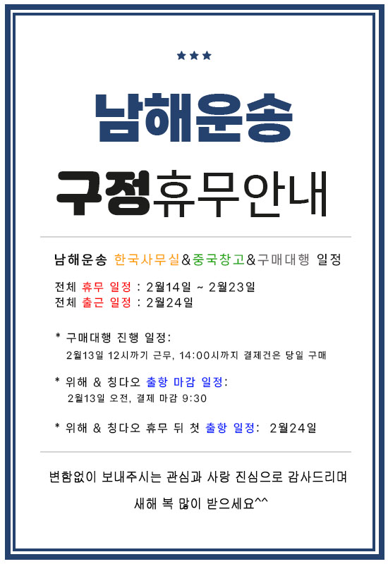 월 화 수 목 금 일(토요일/공휴일 휴무)